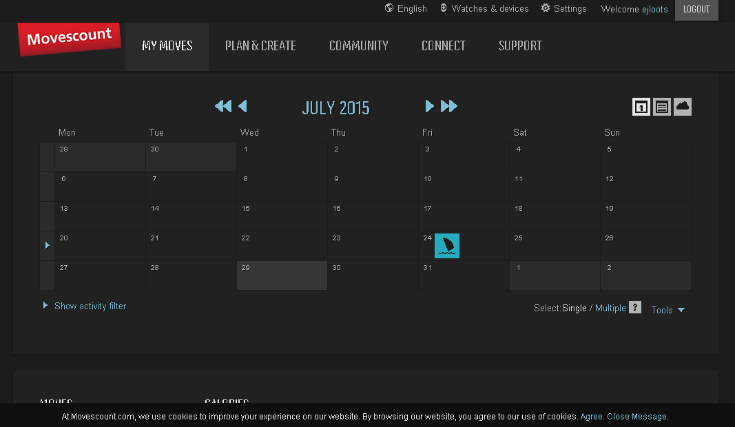 - go to movescount.com and check my moves.